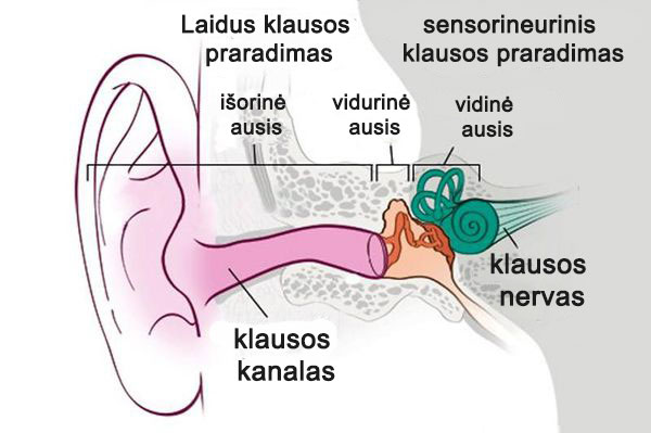 - Pradiniame etape klausos praradimas pasireiškia silpnai. Dauguma nekreipia dėmesio į simptomus, o patys simptomai atsiranda ir praeina.
